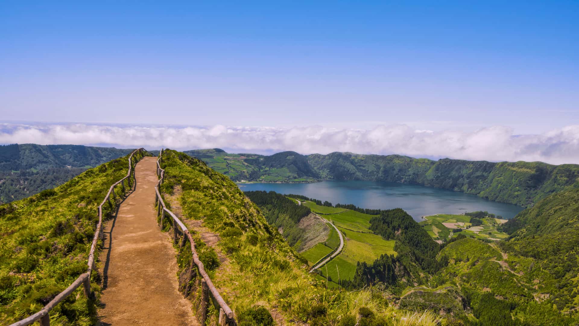 Montée par la route de montagne vers Lagoa do Fogo (arrêt à ~900 m d’alt.) : lac de cratère dans la caldeira d’un volcan éteint, parmi les sites les plus spectaculaires de l’île.